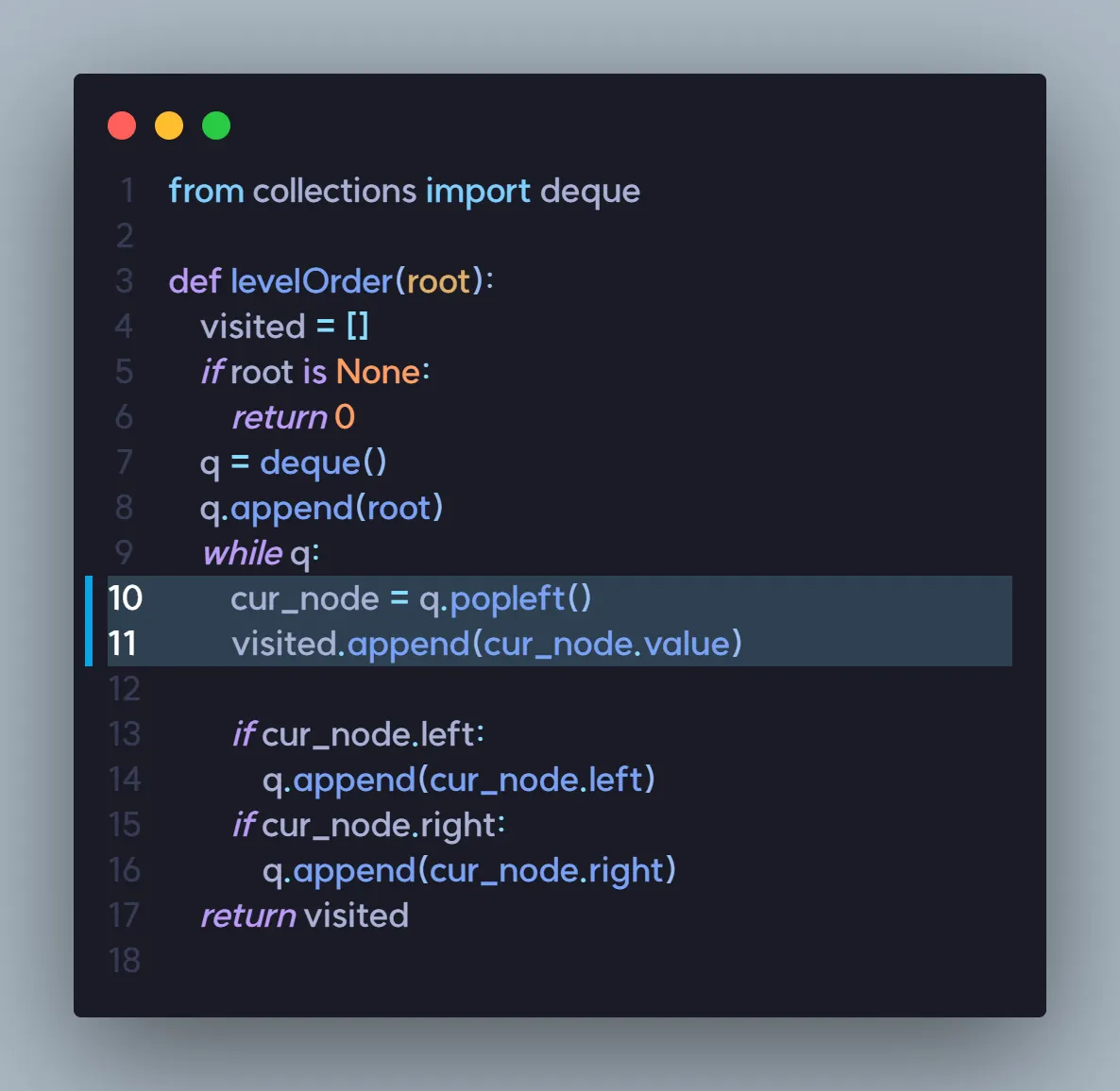 level order traversal의 탐색 방법을 알았으니, 코드를 구현해 볼 차례입니다.
