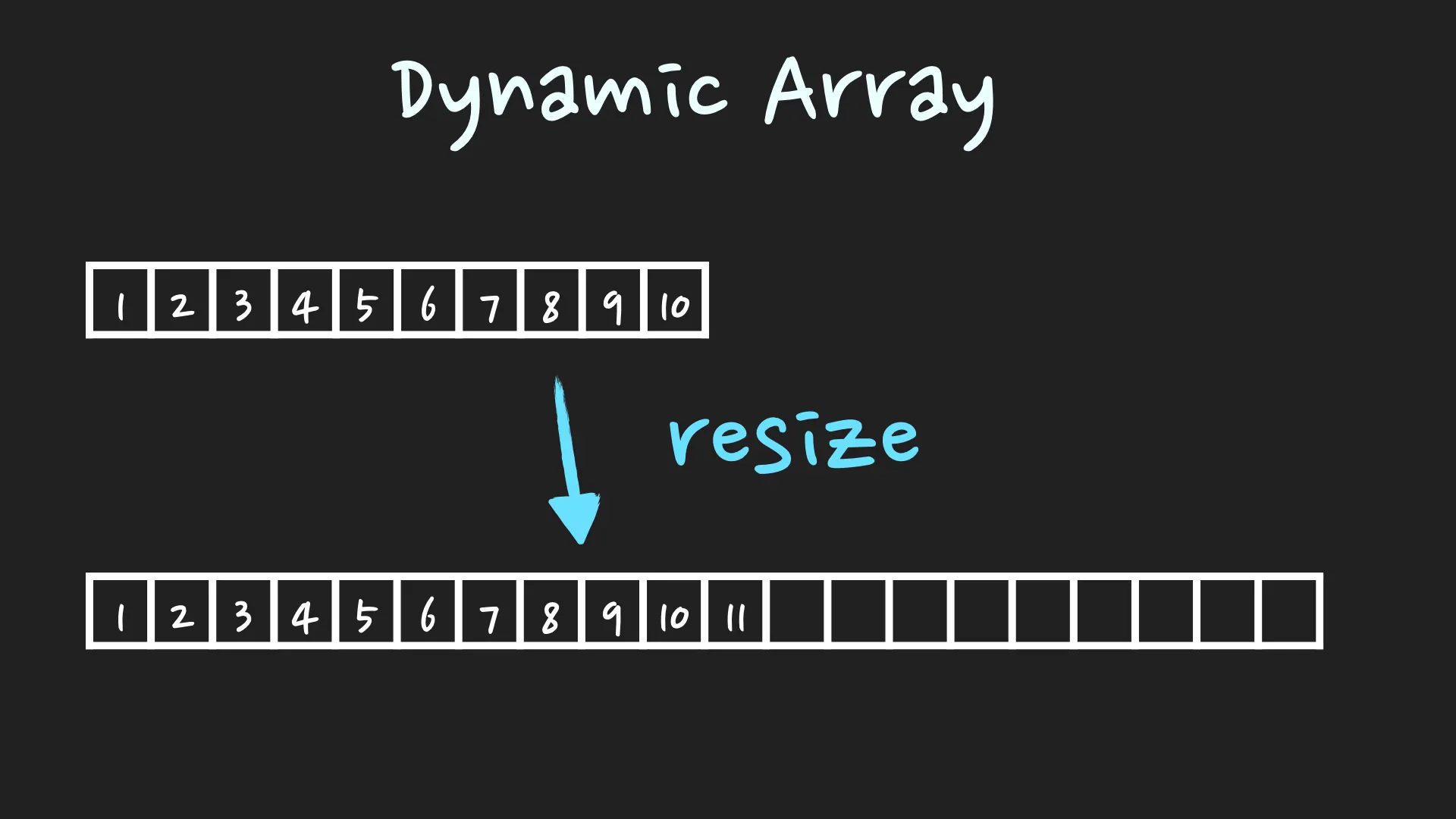 Dynamic Array는 size를 자동적으로 resizing을 하는 Array입니다. 기존에 고정된 size를 가진 Static Array의 한계점을 보안하고자 고안되었습니다. Dynamic Array는 data를 계속 추가하다가 기존에 할당된 memory를 초과하게 되면, size를 늘린 배열을 선언하고 그곳으로 모든 데이터를 옮김으로써 늘어난 크기의 size를 가진 배열이 됩니다. 이를 resize라고 합니다. 이로써 새로운 data를 저장할 수 있게 됩니다. 따라서 Dynamic Array는 size를 미리 고민할 필요없다는 장점이 있습니다.