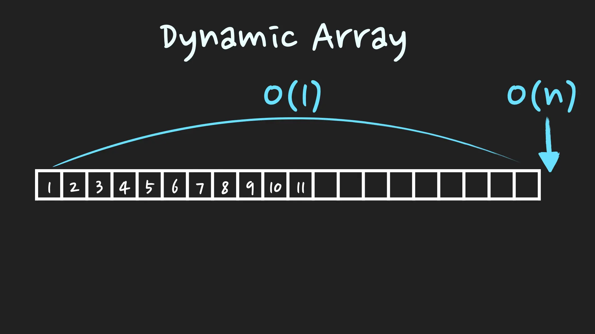 Dynamic array에 데이터를 추가할 때마다 의 시간이 걸리게 됩니다. → 추가를 하다가 미리 선언된 size를 넘어서는 순간에 resize를 하게 됩니다. → 이 때는 일일이 데이터를 모두 옮겨야 되기 때문에 이 때만큼은의 시간이 걸리게 됩니다.