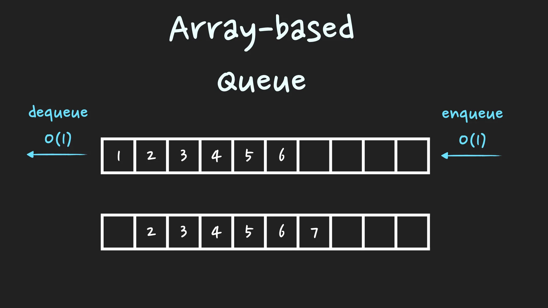 Array-Based queue: enqueue와 dequeue 과정에서 남는 메모리가 생깁니다. 따라서 메모리의 낭비를 줄이기 위해 주로 Circular queue형식으로 구현을 합니다.